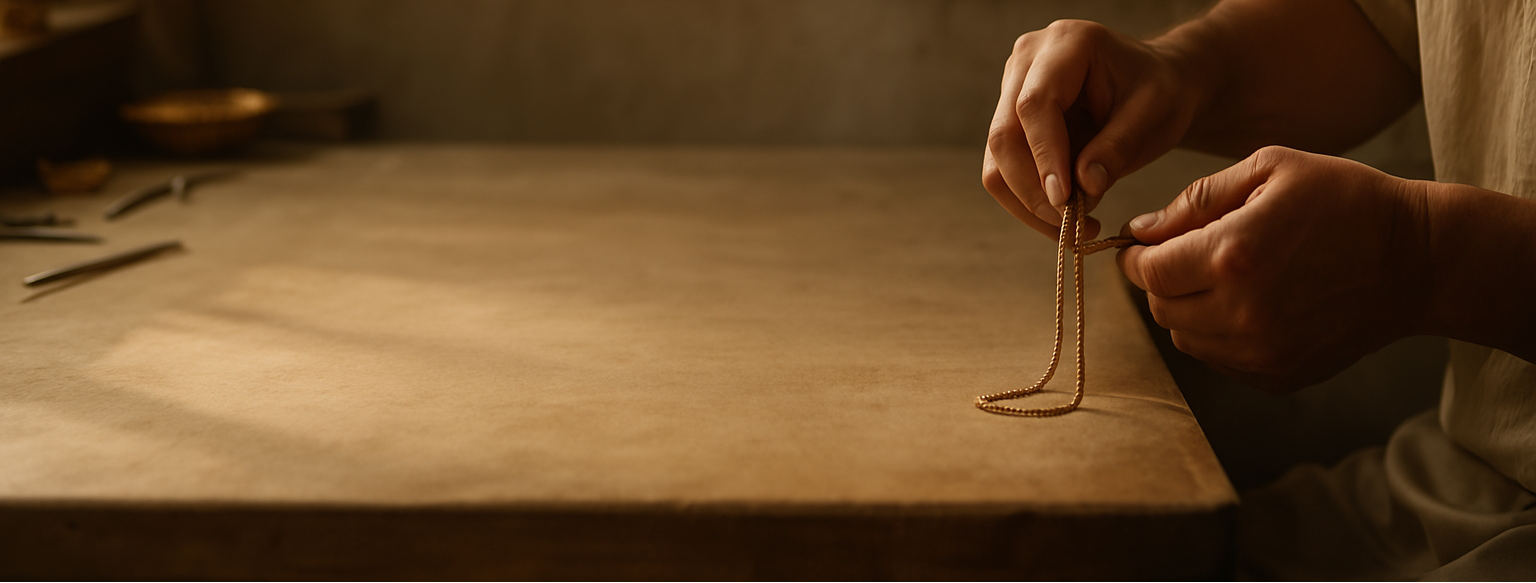 Gefertigt aus reinem 23 oder 24 Karat Gold, bewahrt es die Ruhe der Handarbeit und die Kraft echter Tradition.